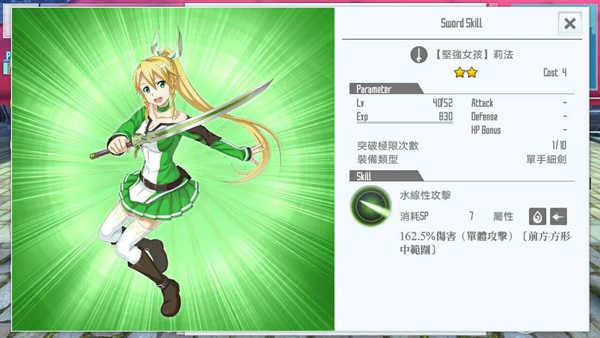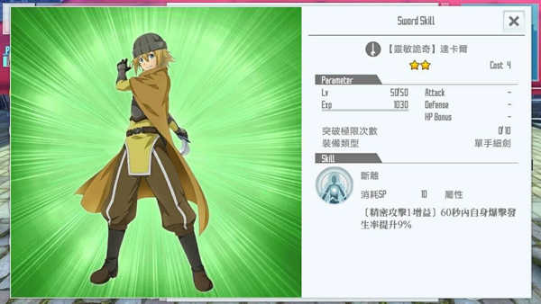 这张卡可以说是各武器的必备加攻击防具卡,在没有「黑色剑士桐人」、「心明眼亮西莉卡」等强四星加攻击防具卡的时候,这张就是新手跟非洲人的强卡了。